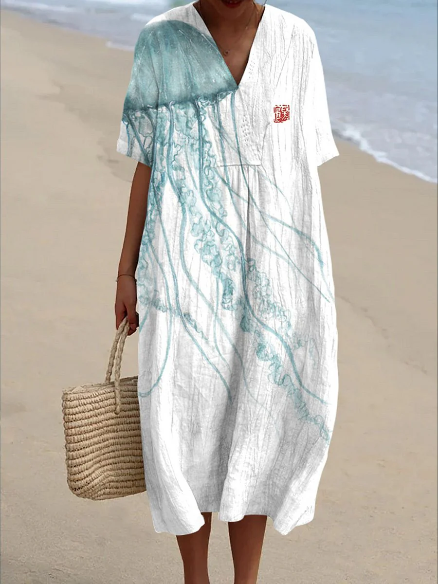 Watercolor Jellyfish Art Printed Women's Flowy Dress