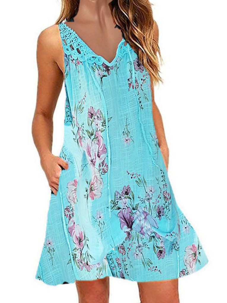 Women's Sleeveless V-Neck Graphic Printed Dress