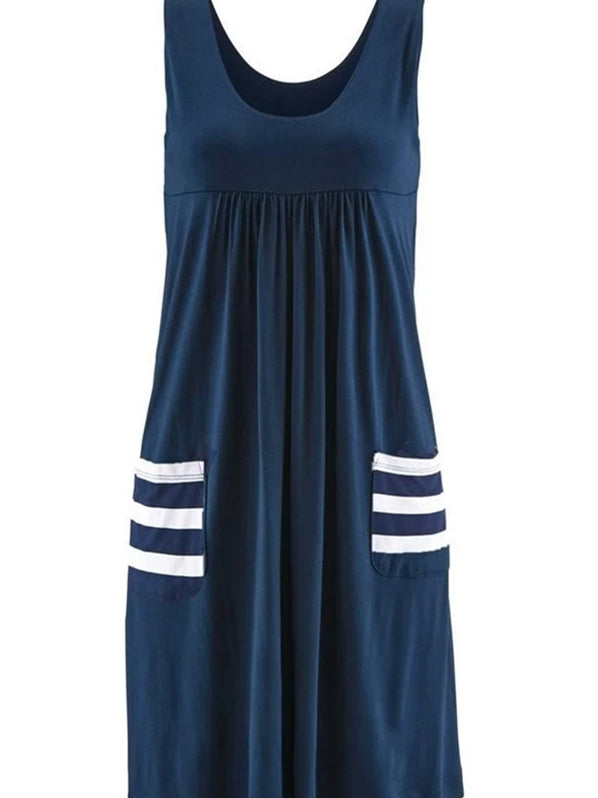 Women Sleeveless Scoop Neck Solid Color Striped Dress