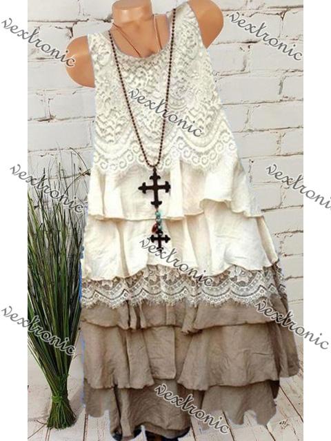 Women Round Neck Sleeveless Dress Lace Dress