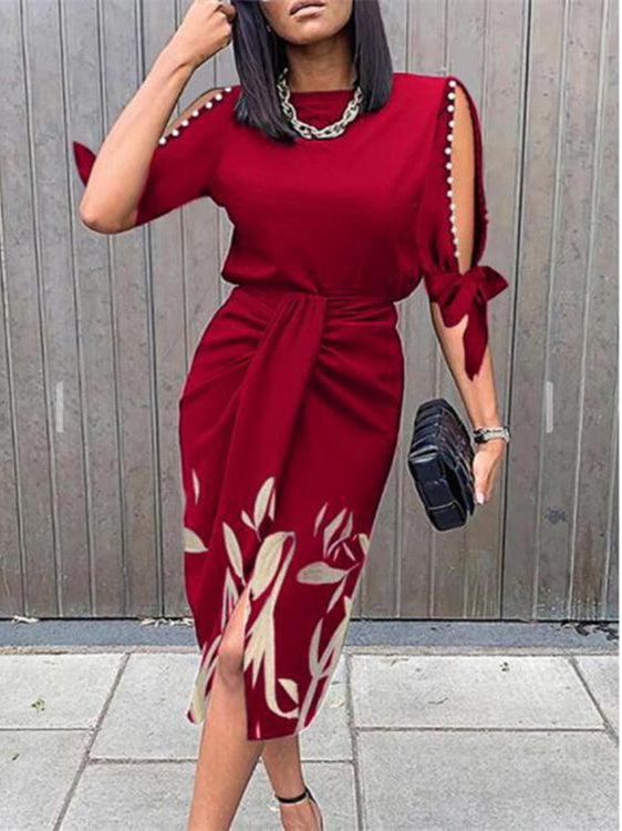 Women's Scoop Neck Cold Shoulder Graphic Midi Dress