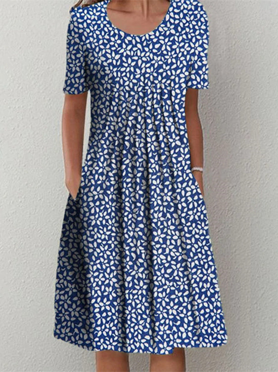 Women Short Sleeve Scoop Neck Floral Printed Dress
