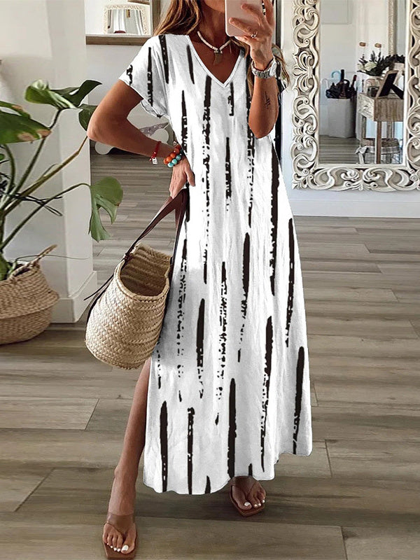 Women's Striped V-neck Casual Short Sleeve Dress