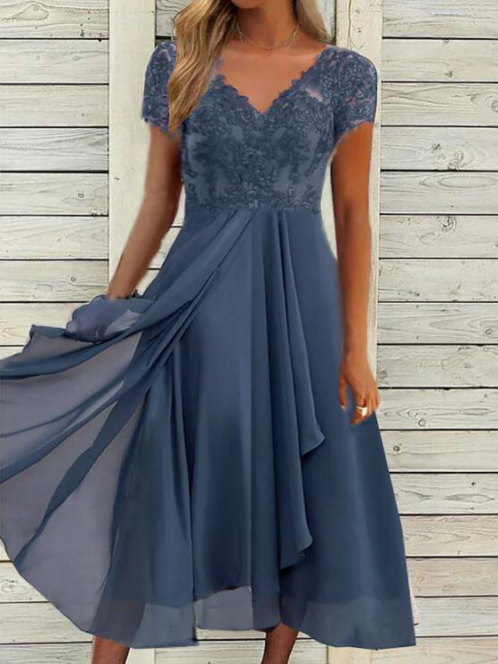 Women's Short Sleeve V-neck Chiffon Wedding Guest Dress Bridesmaid Dress