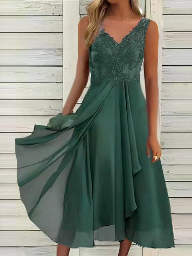 Women's Sleeveless V-neck Chiffon Wedding Guest Dress Bridesmaid Dress
