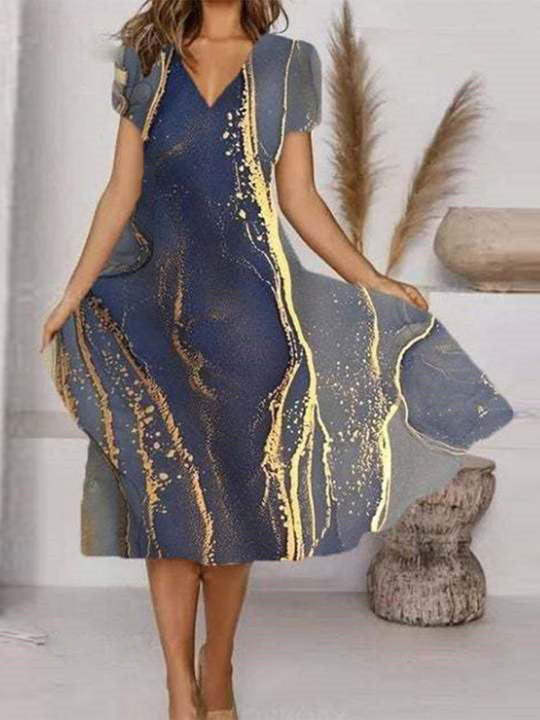 Women's Summer Short Sleeve V-neck Gradient Floral Print Fashion Loose Dress