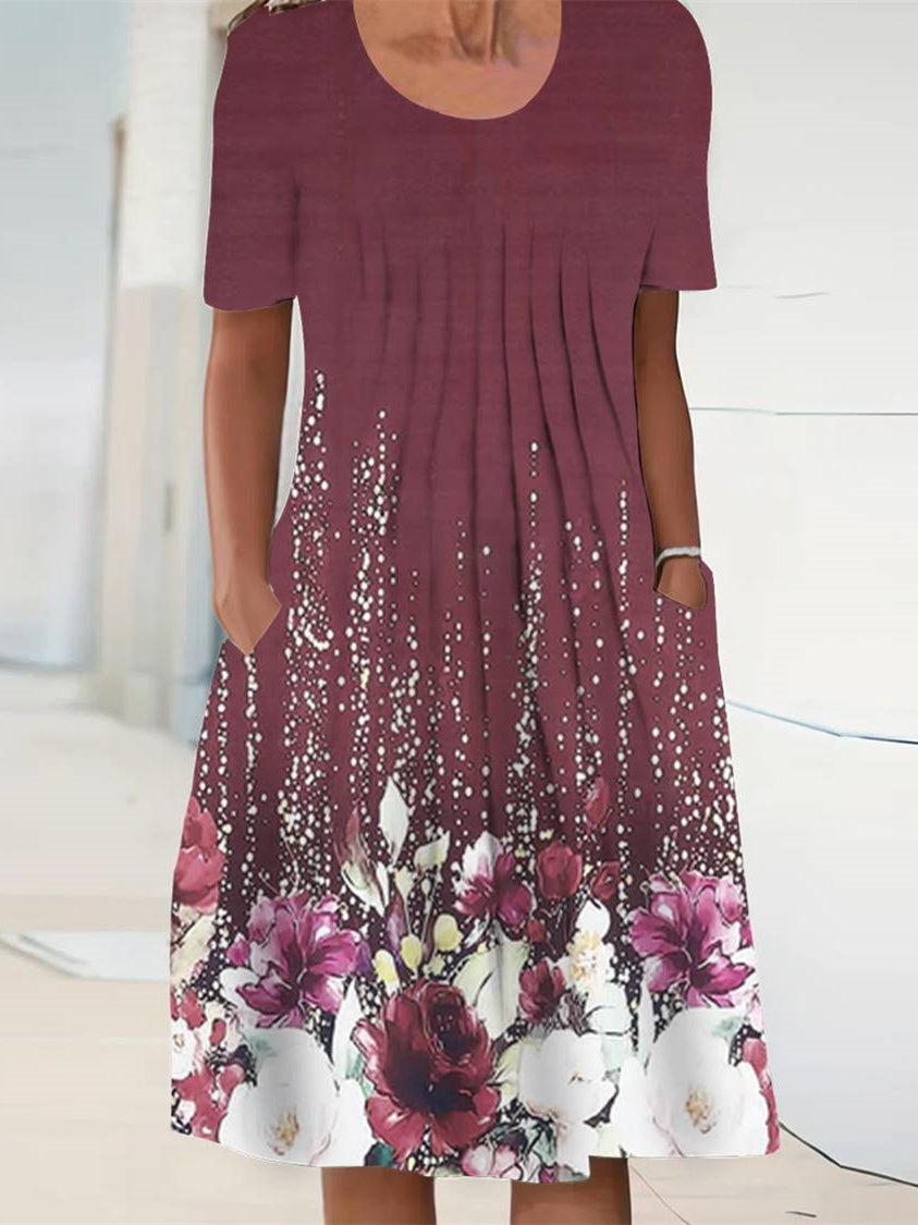 Women's Short Sleeve Scoop Neck Floral Printed Graphic Midi Dress