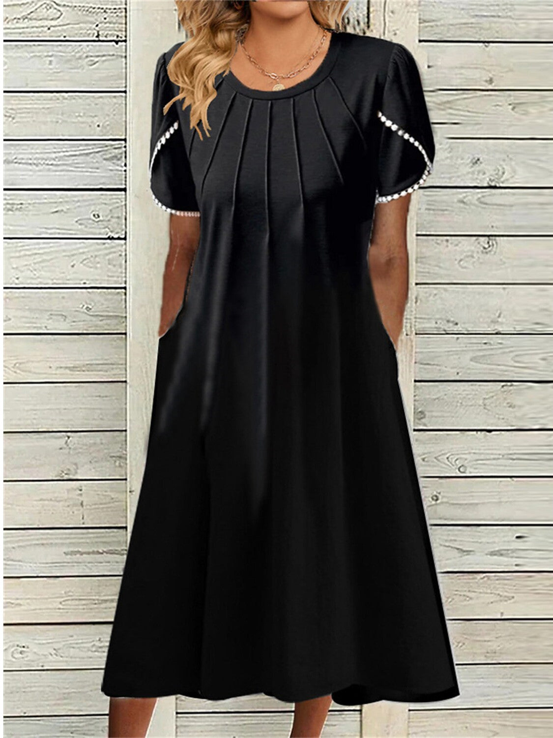 Women's Short Sleeve Scoop Neck Solid Color Casual Pocket Dress