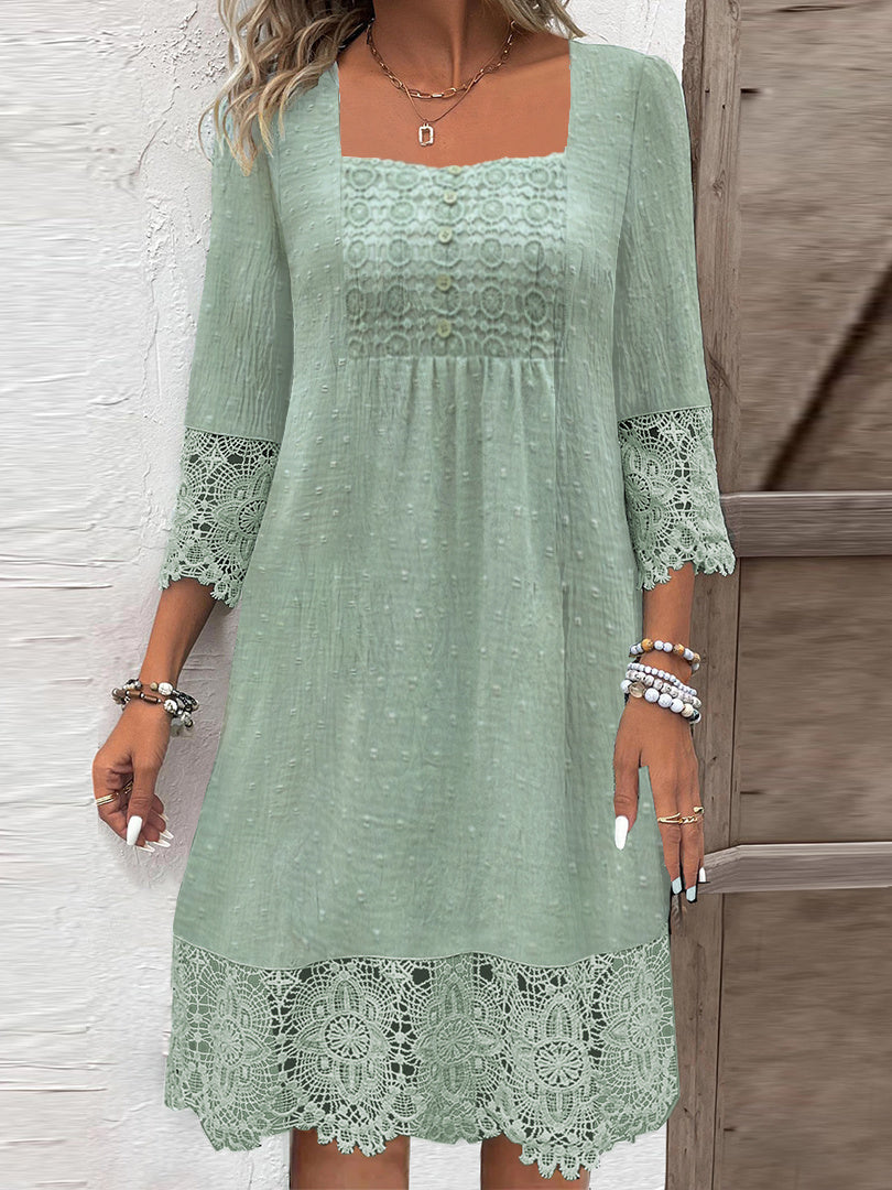Women's 3/4 Sleeve Square Collar Lace Solid Color Midi Dress