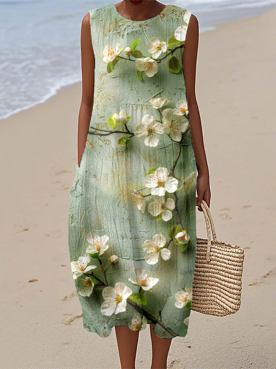 Women's Blooming Floral Pattern Linen Dress