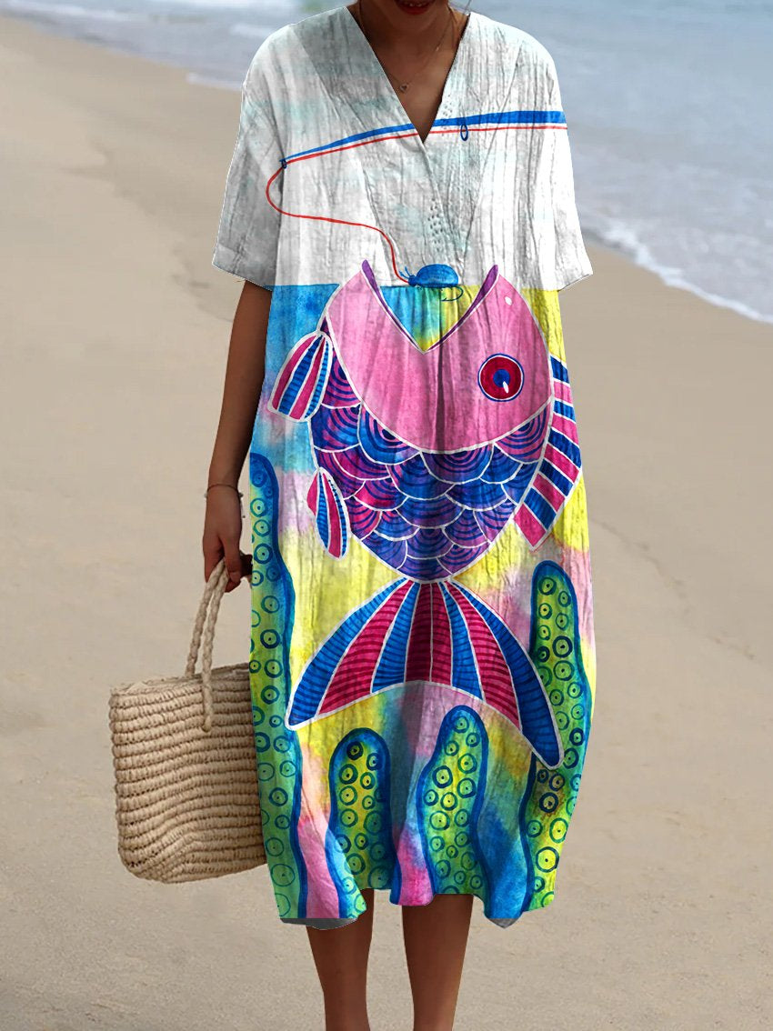 Women's Fish Art Print Flowy Dress