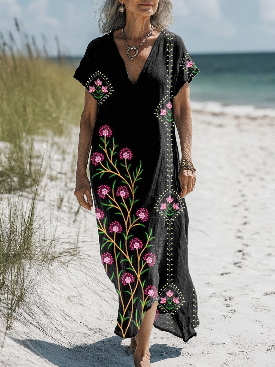 Women's Floral Art Print Pocket Cotton Dress