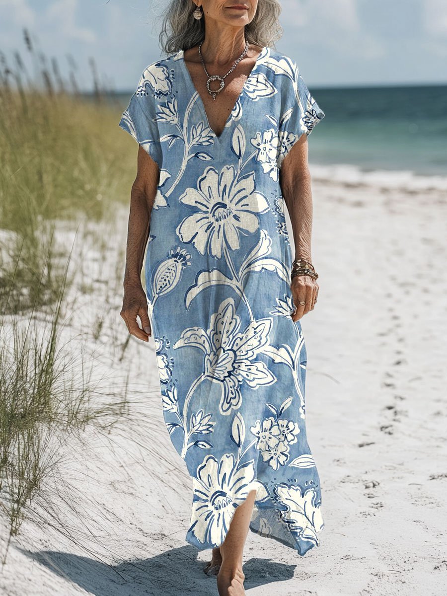 Women's Floral Art Print Pocket Cotton Dress