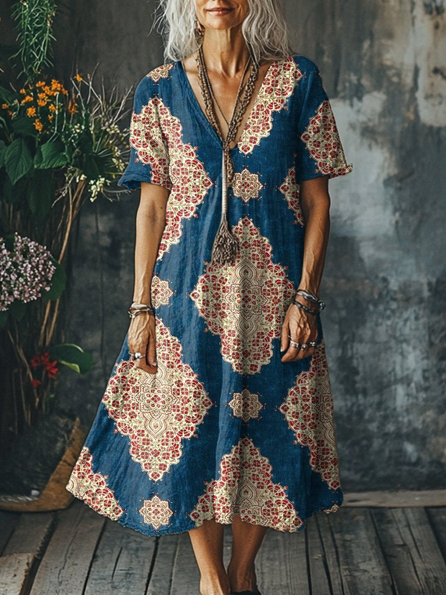 Women's Flowers Art Print Pocket Cotton Dress