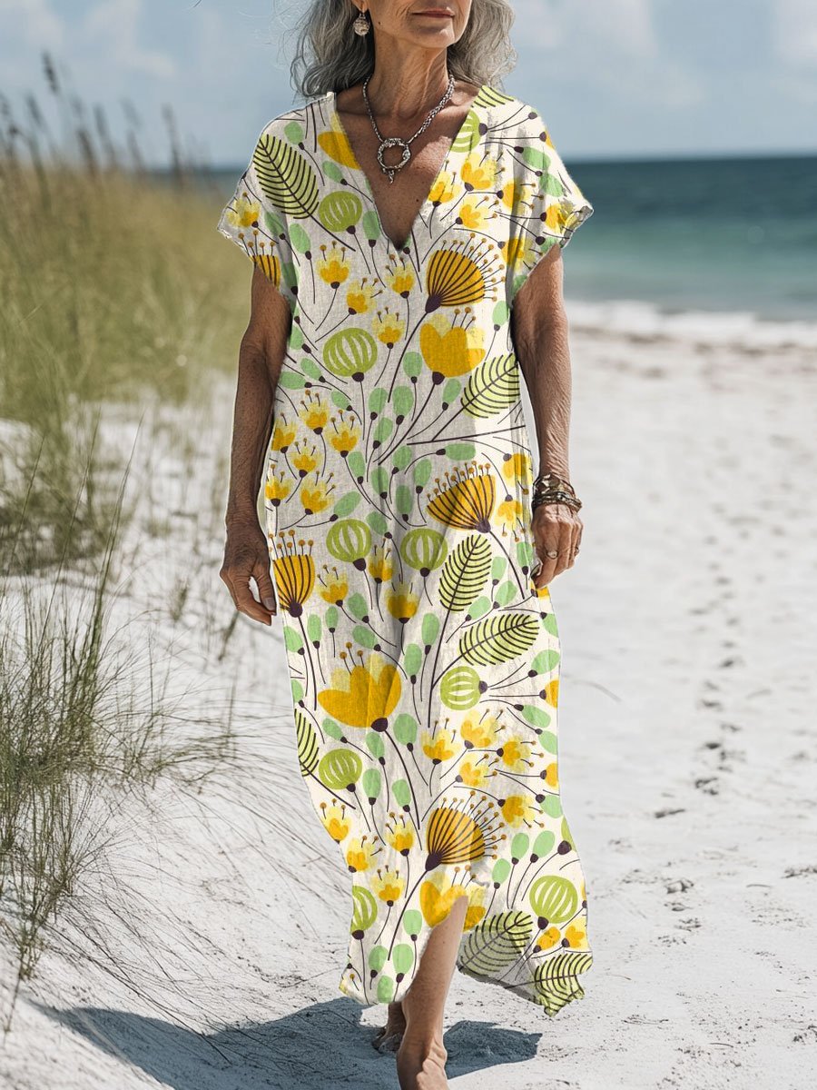Women's Flowers Art Print Pocket Cotton Dress
