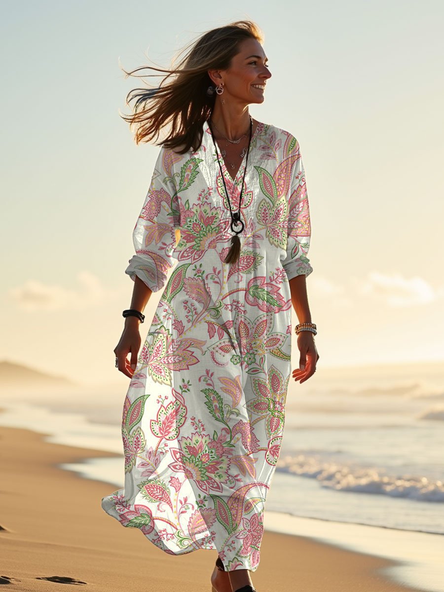 Women's Holiday Floral Art Print Casual Dress