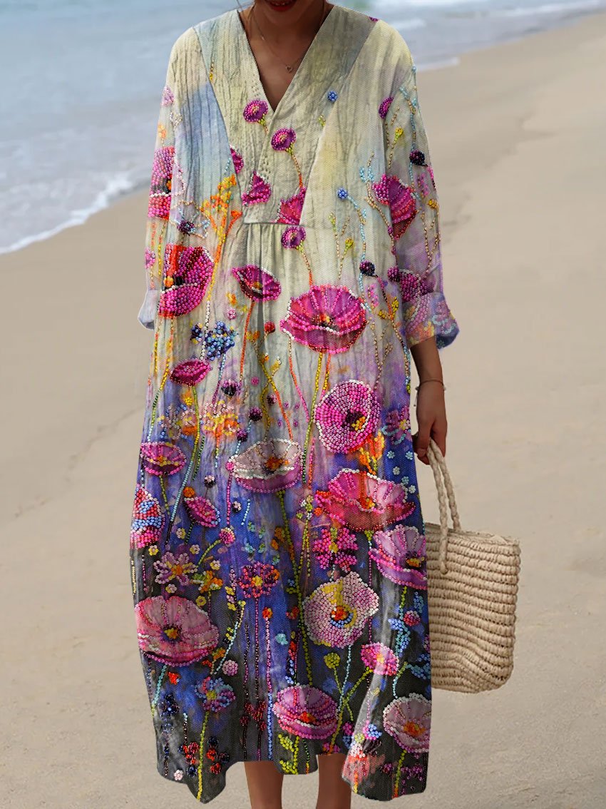 Women's Retro Flowers Art Print Casual Dress
