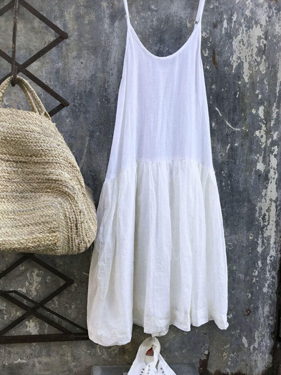 Women's Simple Solid Color Linen Mid-Length Dress