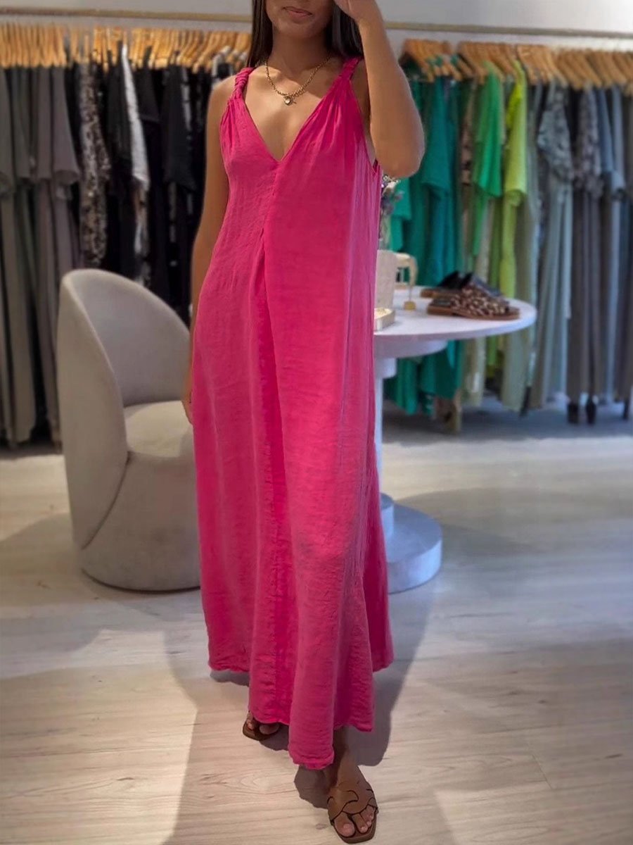 Women's Solid Color Casual V-neck Cotton Dress