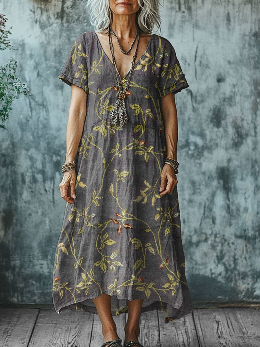 Women's Vintage Art Print Pocket Cotton Dress