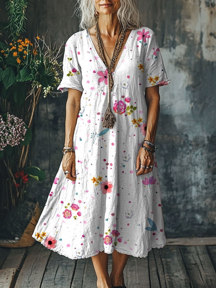 Women's Vintage Art Print Pocket Cotton Dress