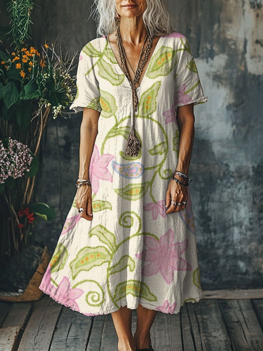 Women's Vintage Art Print Pocket Cotton Dress