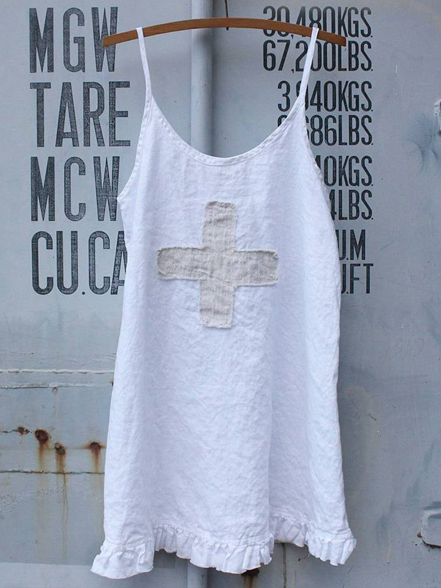 Women's Vintage Cross Patchwork Linen Slip Dress